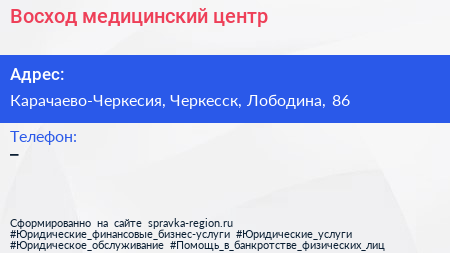 Восход, медицинский центр по адресу Карачаево-Черкесия, Черкесск, Лободина, 86 в дальнейшем Организация, размещена в следующих категориях: