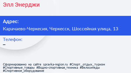 Элл-Энерджи по адресу Карачаево-Черкесия, Черкесск, Шоссейная улица, 13 в дальнейшем Организация, размещена в следующих категориях: