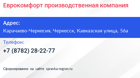 Еврокомфорт, производственная компания по адресу Карачаево-Черкесия, Черкесск, Кавказская улица, 56а в дальнейшем Организация, размещена в следующих категориях: