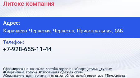 Литокс, компания по адресу Карачаево-Черкесия, Черкесск, Привокзальная, 16Б в дальнейшем Организация, размещена в следующих категориях: