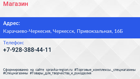 Магазин по адресу Карачаево-Черкесия, Черкесск, Привокзальная, 16Б в дальнейшем Организация, размещена в следующих категориях: