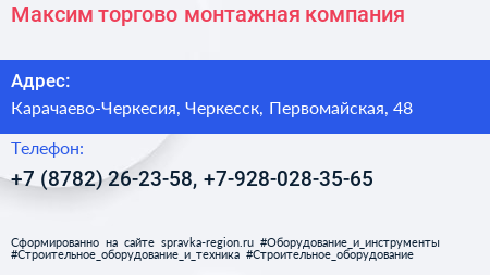 Максим, торгово-монтажная компания по адресу Карачаево-Черкесия, Черкесск, Первомайская, 48 в дальнейшем Организация, размещена в следующих категориях: