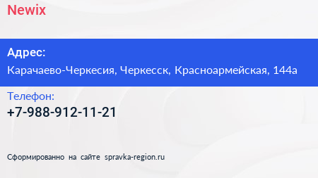 Newix по адресу Карачаево-Черкесия, Черкесск, Красноармейская, 144а в дальнейшем Организация, размещена в следующих категориях: