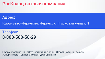 РосКварц, оптовая компания по адресу Карачаево-Черкесия, Черкесск, Парковая улица, 1 в дальнейшем Организация, размещена в следующих категориях: