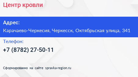 Центр кровли по адресу Карачаево-Черкесия, Черкесск, Октябрьская улица, 341 в дальнейшем Организация, размещена в следующих категориях: