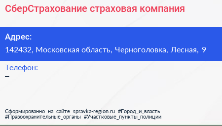 СберСтрахование, страховая компания по адресу 142432, Московская область, Черноголовка, Лесная, 9 в дальнейшем Организация, размещена в следующих категориях: