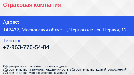 Страховая компания по адресу 142432, Московская область, Черноголовка, Первая, 12 в дальнейшем Организация, размещена в следующих категориях: