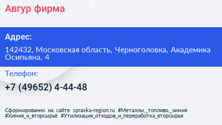 Авгур, фирма по адресу 142432, Московская область, Черноголовка, Академика Осипьяна, 4 в дальнейшем Организация, размещена в следующих категориях: