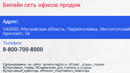 Билайн, сеть офисов продаж по адресу 142432, Московская область, Черноголовка, Институтский проспект, 5в в дальнейшем Организация, размещена в следующих категориях: