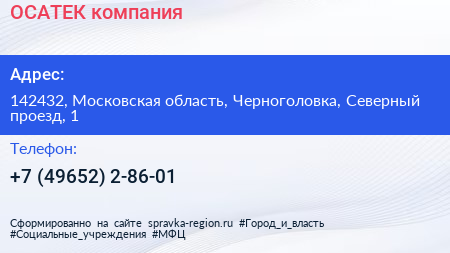 ОСАТЕК, компания по адресу 142432, Московская область, Черноголовка, Северный проезд, 1 в дальнейшем Организация, размещена в следующих категориях: