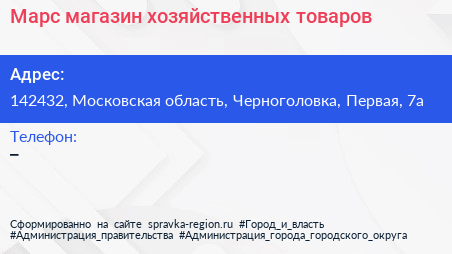 Марс, магазин хозяйственных товаров по адресу 142432, Московская область, Черноголовка, Первая, 7а в дальнейшем Организация, размещена в следующих категориях: