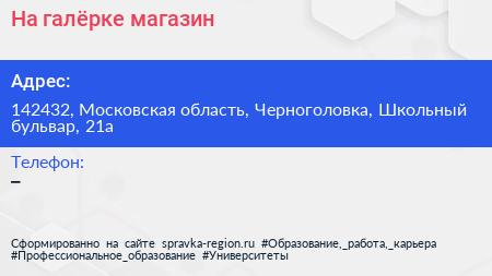 На галёрке, магазин по адресу 142432, Московская область, Черноголовка, Школьный бульвар, 21а в дальнейшем Организация, размещена в следующих категориях: