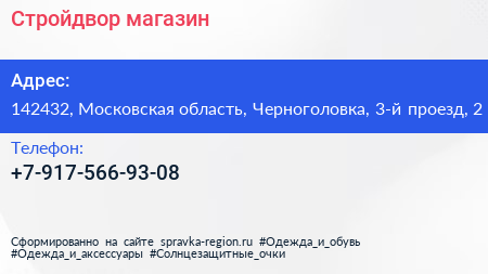 Стройдвор, магазин по адресу 142432, Московская область, Черноголовка, 3-й проезд, 2 в дальнейшем Организация, размещена в следующих категориях: