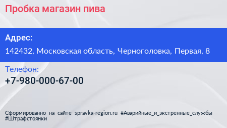 Пробка, магазин пива по адресу 142432, Московская область, Черноголовка, Первая, 8 в дальнейшем Организация, размещена в следующих категориях: