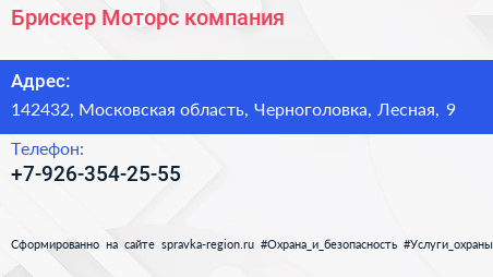 Брискер-Моторс, компания по адресу 142432, Московская область, Черноголовка, Лесная, 9 в дальнейшем Организация, размещена в следующих категориях: