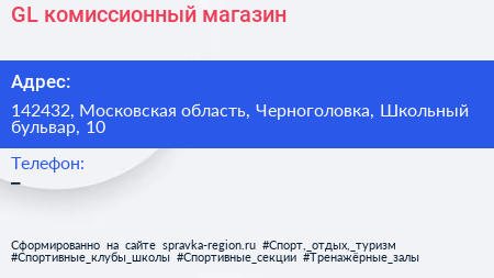 GL, комиссионный магазин по адресу 142432, Московская область, Черноголовка, Школьный бульвар, 10 в дальнейшем Организация, размещена в следующих категориях: