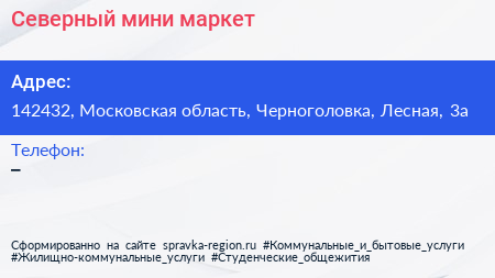 Северный, мини-маркет по адресу 142432, Московская область, Черноголовка, Лесная, 3а в дальнейшем Организация, размещена в следующих категориях: