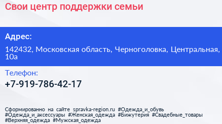 Свои, центр поддержки семьи по адресу 142432, Московская область, Черноголовка, Центральная, 10а в дальнейшем Организация, размещена в следующих категориях: