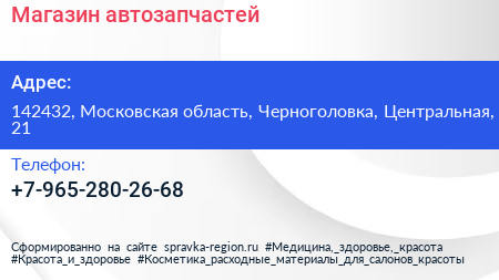 Магазин автозапчастей по адресу 142432, Московская область, Черноголовка, Центральная, 21 в дальнейшем Организация, размещена в следующих категориях: