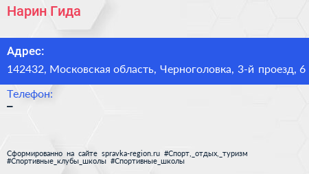 Нарин Гида по адресу 142432, Московская область, Черноголовка, 3-й проезд, 6 в дальнейшем Организация, размещена в следующих категориях: