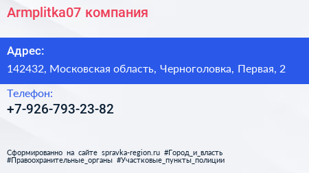 Armplitka07, компания по адресу 142432, Московская область, Черноголовка, Первая, 2 в дальнейшем Организация, размещена в следующих категориях: