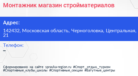 Монтажник, магазин стройматериалов по адресу 142432, Московская область, Черноголовка, Центральная, 21 в дальнейшем Организация, размещена в следующих категориях: