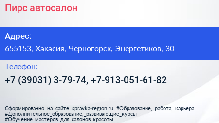Пирс, автосалон по адресу 655153, Хакасия, Черногорск, Энергетиков, 30 в дальнейшем Организация, размещена в следующих категориях: