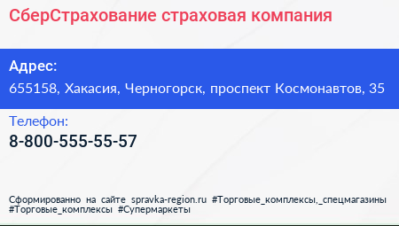 СберСтрахование, страховая компания по адресу 655158, Хакасия, Черногорск, проспект Космонавтов, 35 в дальнейшем Организация, размещена в следующих категориях: