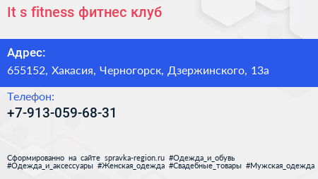It`s fitness, фитнес-клуб по адресу 655152, Хакасия, Черногорск, Дзержинского, 13а в дальнейшем Организация, размещена в следующих категориях: