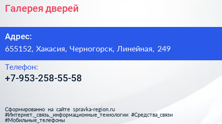 Галерея дверей по адресу 655152, Хакасия, Черногорск, Линейная, 249 в дальнейшем Организация, размещена в следующих категориях:
