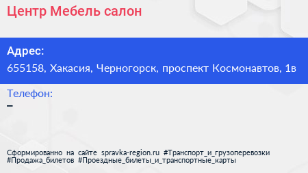 Центр Мебель, салон по адресу 655158, Хакасия, Черногорск, проспект Космонавтов, 1в в дальнейшем Организация, размещена в следующих категориях: