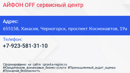 АЙФОН`OFF, сервисный центр по адресу 655158, Хакасия, Черногорск, проспект Космонавтов, 19а в дальнейшем Организация, размещена в следующих категориях: