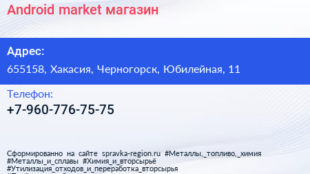 Android-market, магазин по адресу 655158, Хакасия, Черногорск, Юбилейная, 11 в дальнейшем Организация, размещена в следующих категориях: