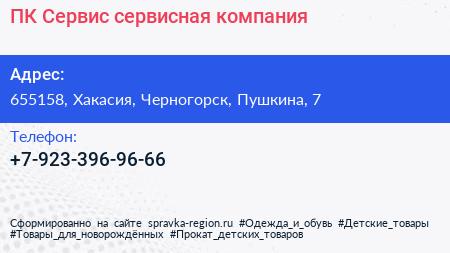 ПК-Сервис, сервисная компания по адресу 655158, Хакасия, Черногорск, Пушкина, 7 в дальнейшем Организация, размещена в следующих категориях: