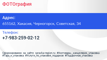 ФОТОграфия по адресу 655162, Хакасия, Черногорск, Советская, 34 в дальнейшем Организация, размещена в следующих категориях: