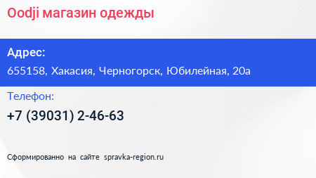 Oodji, магазин одежды по адресу 655158, Хакасия, Черногорск, Юбилейная, 20а в дальнейшем Организация, размещена в следующих категориях: