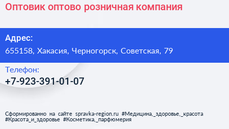 Оптовик, оптово-розничная компания по адресу 655158, Хакасия, Черногорск, Советская, 79 в дальнейшем Организация, размещена в следующих категориях: