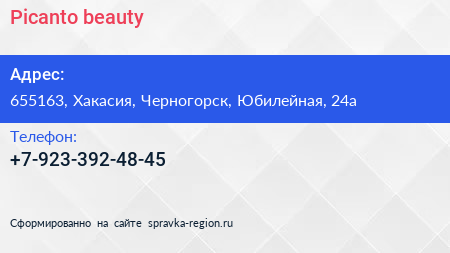 Picanto beauty по адресу 655163, Хакасия, Черногорск, Юбилейная, 24а в дальнейшем Организация, размещена в следующих категориях: