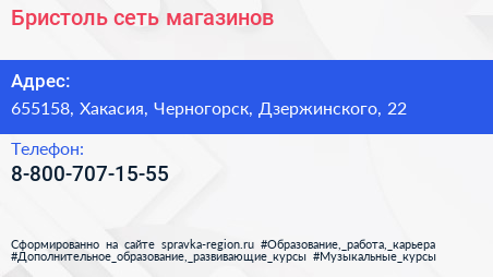 Бристоль, сеть магазинов по адресу 655158, Хакасия, Черногорск, Дзержинского, 22 в дальнейшем Организация, размещена в следующих категориях: