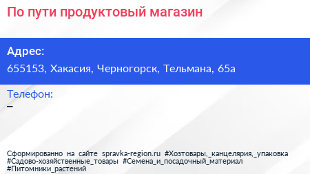 По пути, продуктовый магазин по адресу 655153, Хакасия, Черногорск, Тельмана, 65а в дальнейшем Организация, размещена в следующих категориях: