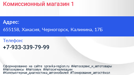 Комиссионный магазин №1 по адресу 655158, Хакасия, Черногорск, Калинина, 17Б в дальнейшем Организация, размещена в следующих категориях: