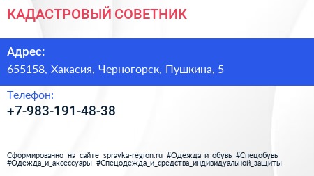КАДАСТРОВЫЙ СОВЕТНИК по адресу 655158, Хакасия, Черногорск, Пушкина, 5 в дальнейшем Организация, размещена в следующих категориях: