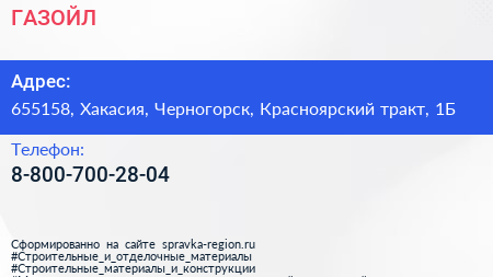 ГАЗОЙЛ по адресу 655158, Хакасия, Черногорск, Красноярский тракт, 1Б в дальнейшем Организация, размещена в следующих категориях: