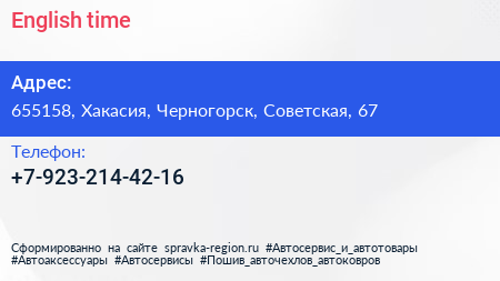 English time по адресу 655158, Хакасия, Черногорск, Советская, 67 в дальнейшем Организация, размещена в следующих категориях: