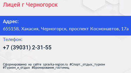 Лицей, г. Черногорск по адресу 655158, Хакасия, Черногорск, проспект Космонавтов, 17а в дальнейшем Организация, размещена в следующих категориях: