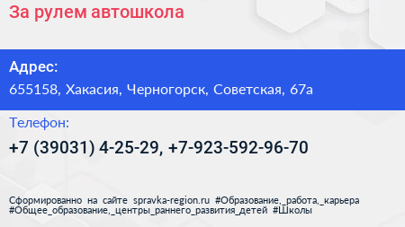 За рулем, автошкола по адресу 655158, Хакасия, Черногорск, Советская, 67а в дальнейшем Организация, размещена в следующих категориях: