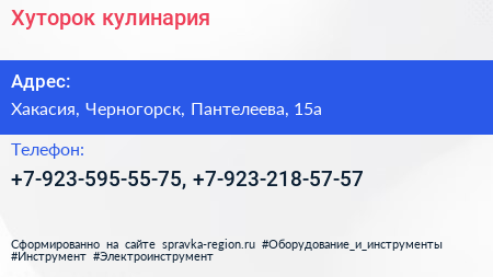 Хуторок, кулинария по адресу Хакасия, Черногорск, Пантелеева, 15а в дальнейшем Организация, размещена в следующих категориях: