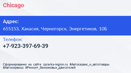 Chicago по адресу 655153, Хакасия, Черногорск, Энергетиков, 10Б в дальнейшем Организация, размещена в следующих категориях: