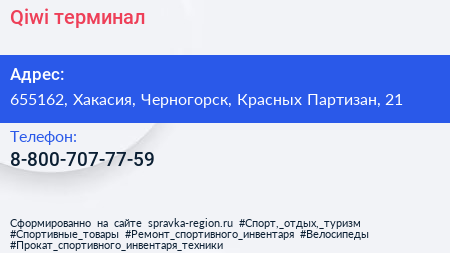 Qiwi, терминал по адресу 655162, Хакасия, Черногорск, Красных Партизан, 21 в дальнейшем Организация, размещена в следующих категориях: