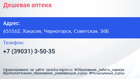 Дешевая аптека по адресу 655162, Хакасия, Черногорск, Советская, 36Б в дальнейшем Организация, размещена в следующих категориях: